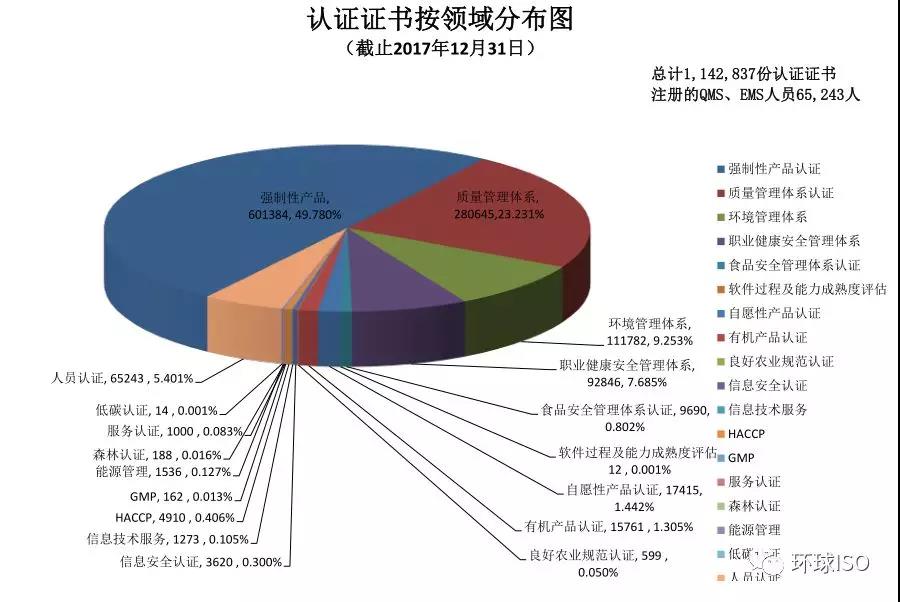 重磅消息:截止2017年各領域有效認證證書發證量