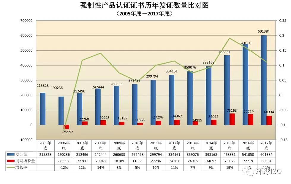 >>重磅消息:截止2017年各領域有效認證證書發證量