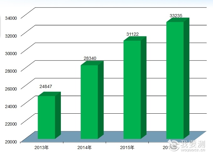 從出報告的數量來看,全行業2013年對社會出具各類檢驗檢測報告是2.83億份,到2016年到了3.56億份,平均每天檢驗檢測行業對社會出具近10萬份報告,所以我們這個行業對社會的貢獻和影響是非常大的。從儀器設備來看,2013年全行業擁有大型儀器設備是328萬臺套,2016年增長到了526萬多臺套,儀器設備資源總量也在不斷地增加。
