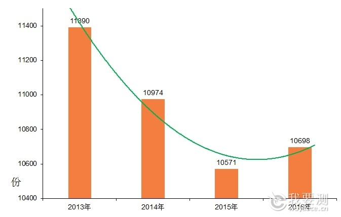 再從另外一個數據:平均每年每個實驗室對外出具檢驗檢測報告的數量來看,近幾年大的趨勢是下降的,這說明一方面我國經濟新常態下,實體經濟發展不理想,也會影響到檢驗檢測行業的發展;另一方面,也說明目前檢驗檢測行業機構數量擴張過快,但檢驗檢測市場總量增長沒有那么大,所以每家機構分割到的蛋糕比原來小了。從這些數據也可以推斷出,今后檢驗檢測市場的競爭會更加激烈,生存壓力會更大更難。